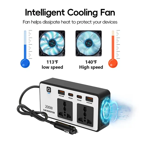 - An advanced insulated ABS shell houses a built-in smart chip that safeguards the inverter. Electrical equipment, car batteries, and so on.