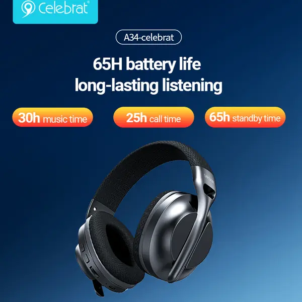 Enjoy the exceptional sound and all-day comfort with the Celebrat A34 Bluetooth Wireless Headphone – designed for music lovers, gamers, and multitaskers who need wireless freedom and top-tier audio quality. Featuring Bluetooth 5.0 connectivity, these Celebrat A34 wireless headphones deliver ultra-low latency, stable signal transmission, and seamless pairing with smartphones, tablets, and laptops.