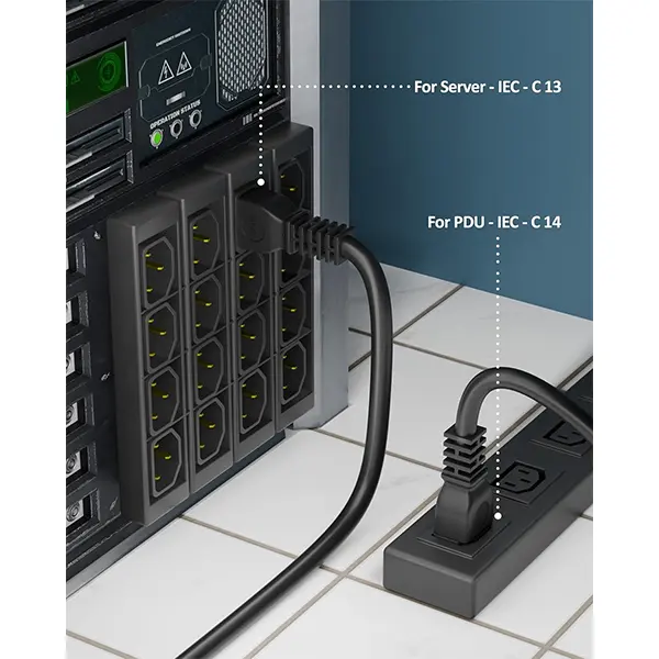 - IEC C14 to IEC C13 Connectors: Universal compatibility for PDU, UPS, servers, PCs