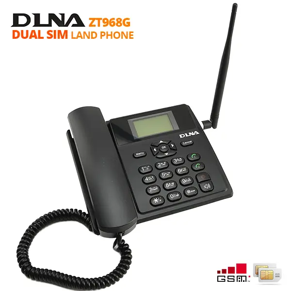 Experience the best of SIM Phone with the DLNA ZT968G Dual SIM LandPhone Desktop Telephone, a GSM fixed wireless phone designed for modern communication in home and office use. With dual SIM support, strong signal reception, and a desktop-friendly build, this landphone blends mobile convenience with the structure of a traditional desk phone.