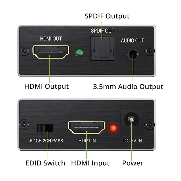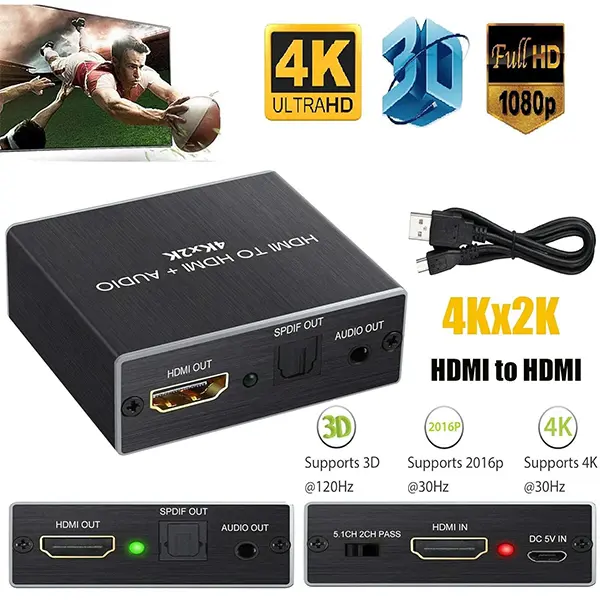 An HDMI audio extractor is a small device designed to split audio and video signals from an HDMI source. It typically features one HDMI input, an HDMI output for video, and dedicated audio outputs like SPDIF (optical) or RCA. This allows you to send high-quality audio to your speakers or AV receiver without disrupting the video stream.