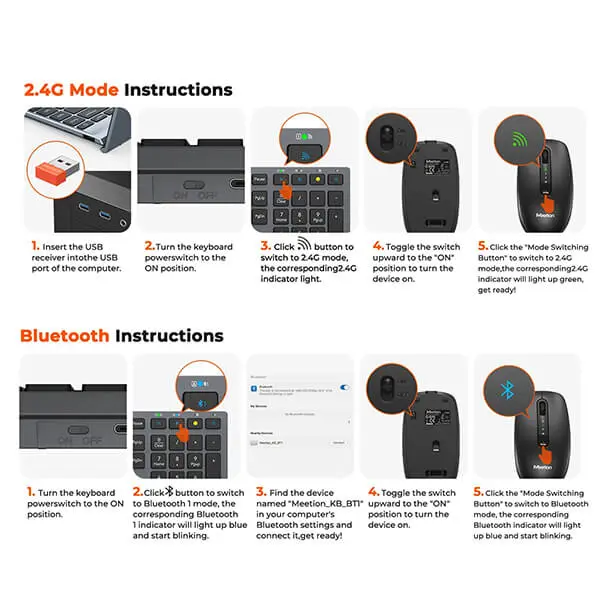 MEETION C2000 2.4G + Bluetooth Wireless Keyboard and Mouse Combo – Smart, Comfortable, and Reliable Performance