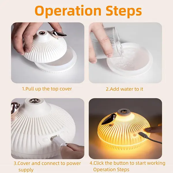 • Step 3: Plug the USB cable into the socket, press the switch and the humidifier starts working.
