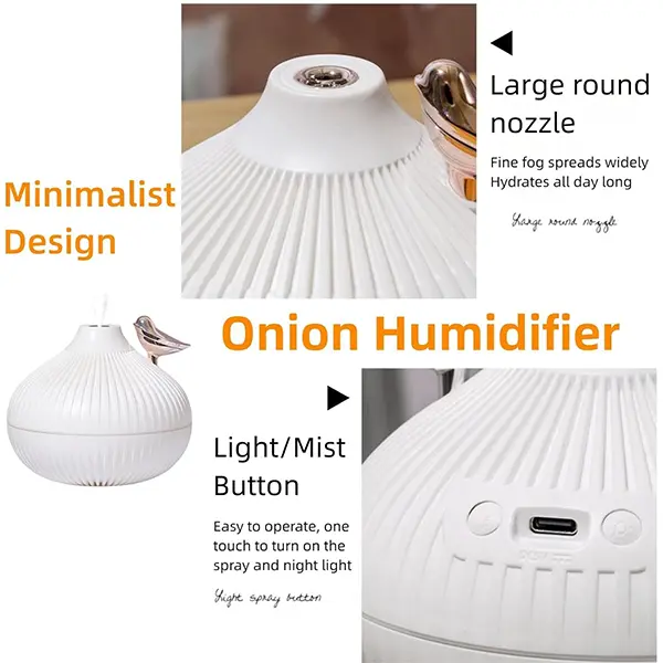 • Onion Design: With an innovative onion design, this humidifier is unique and adds a touch of charm and romance to a room in your home