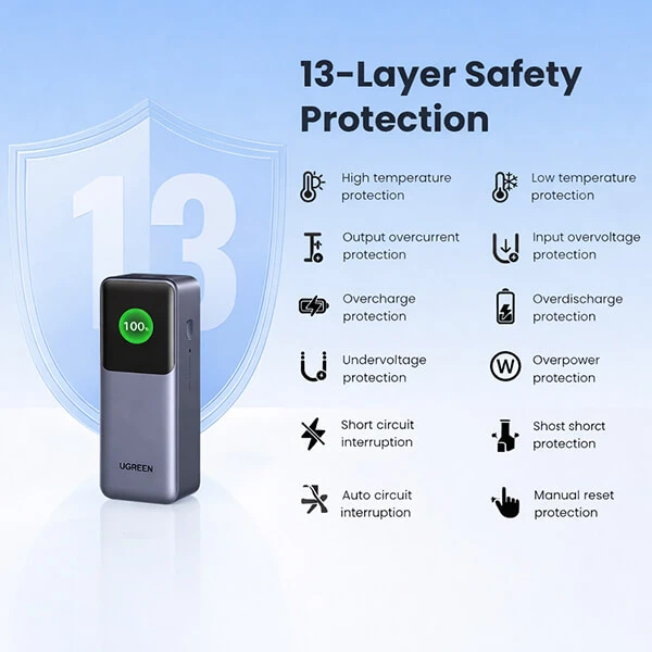 With advanced fast-charging technology and a large 20000mAh capacity, the UGREEN 130W 20000mAh Power Bank PB721 – 35524 combines reliability, speed, and safety in one compact device.