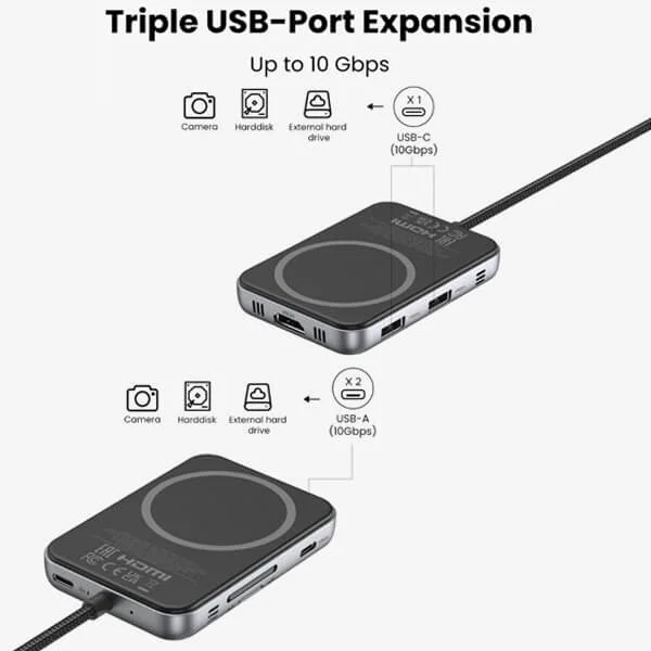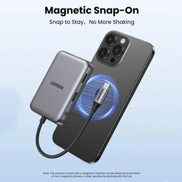 The Ugreen 7-in-1 Magnetic USB-C Hub is a revolutionary connectivity tool designed for professionals who value a clean and organized desk. Its unique Ugreen Magnetic Docking Station feature allows you to attach or detach the hub with ease, keeping your workspace minimalist.